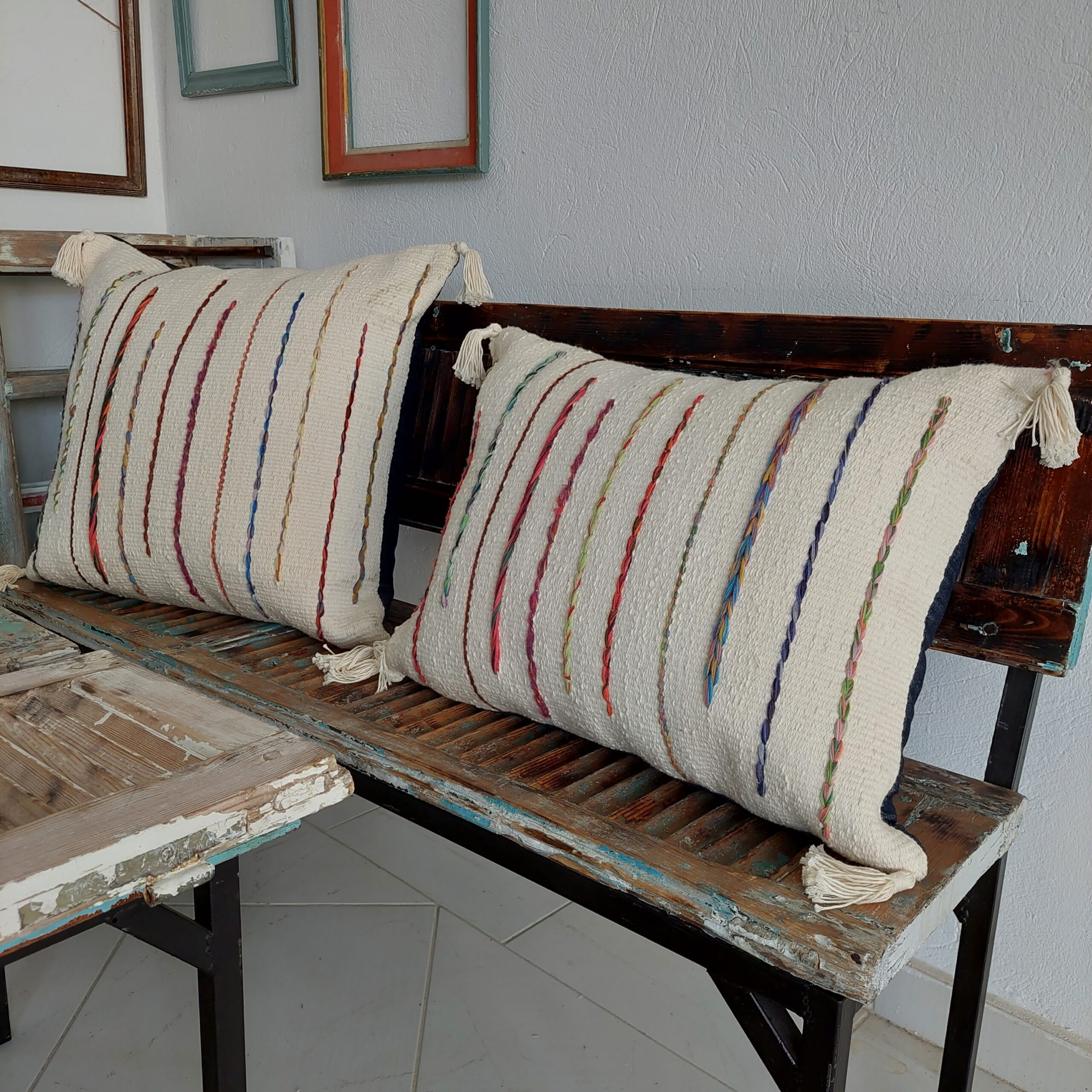 Coussin en coton tissé à la main avec des motifs modernes.