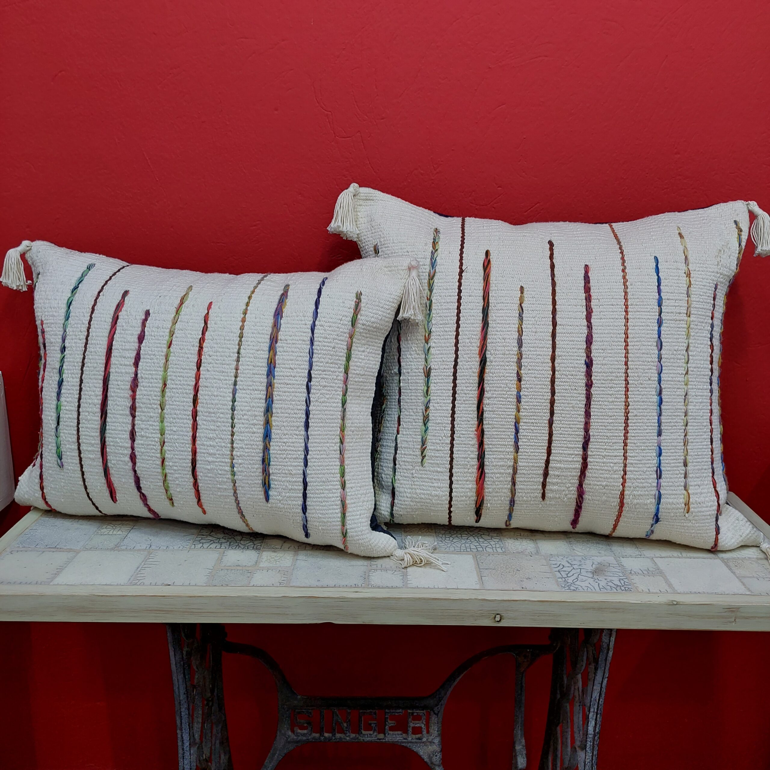 Coussin tissé à la main avec des motifs modernes.