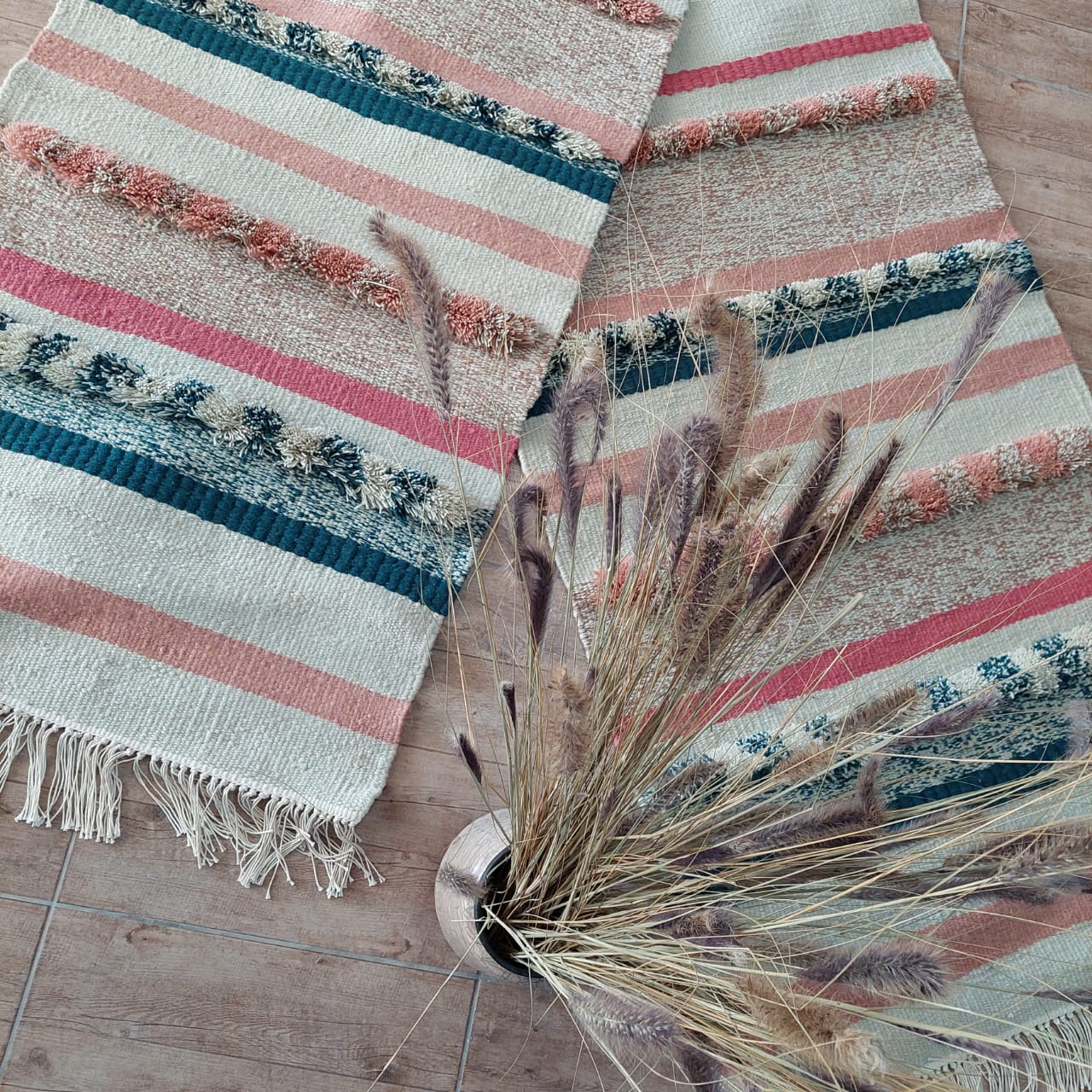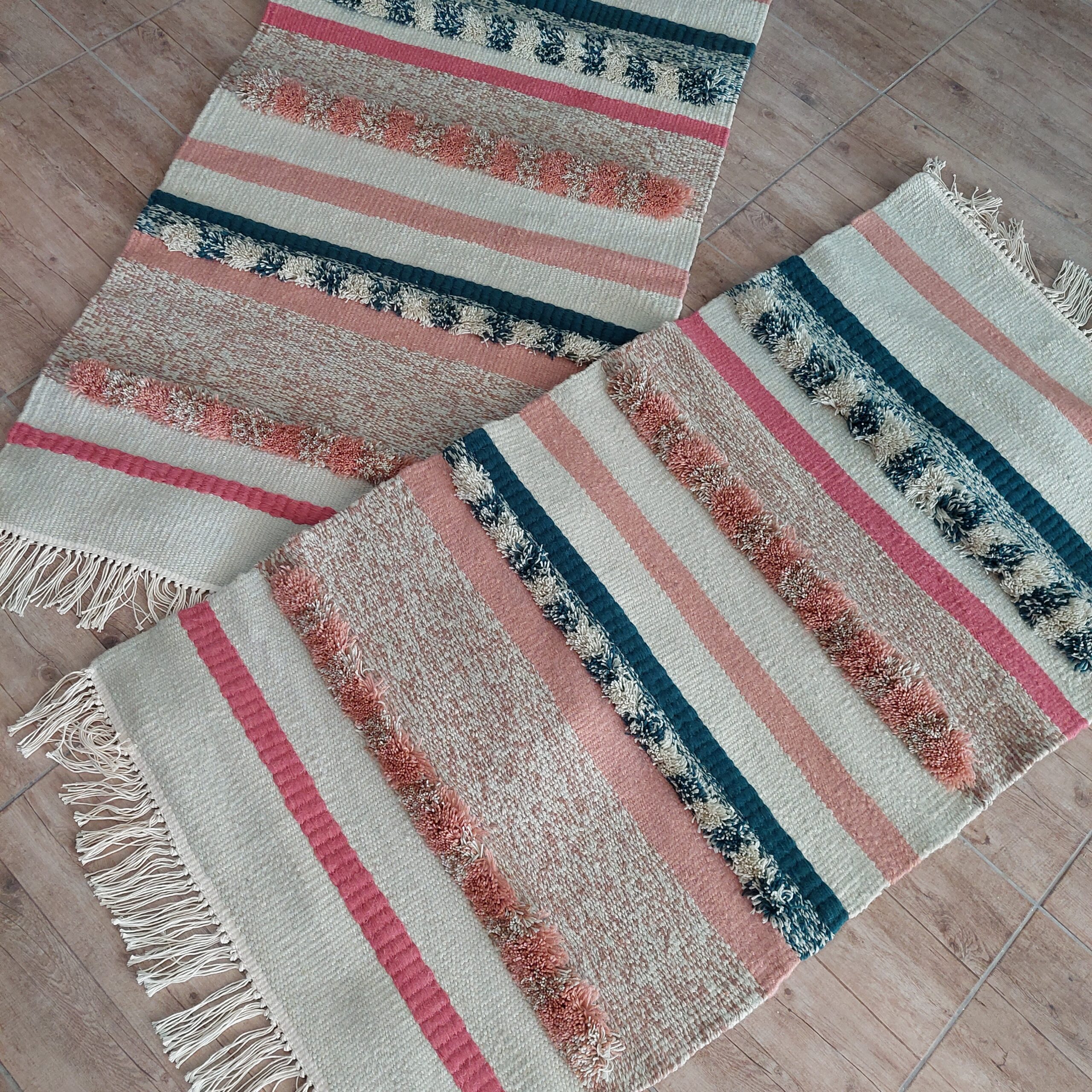 Descente de lit de qualité design et contemporain, tissée à la main avec du coton et la laine de France.