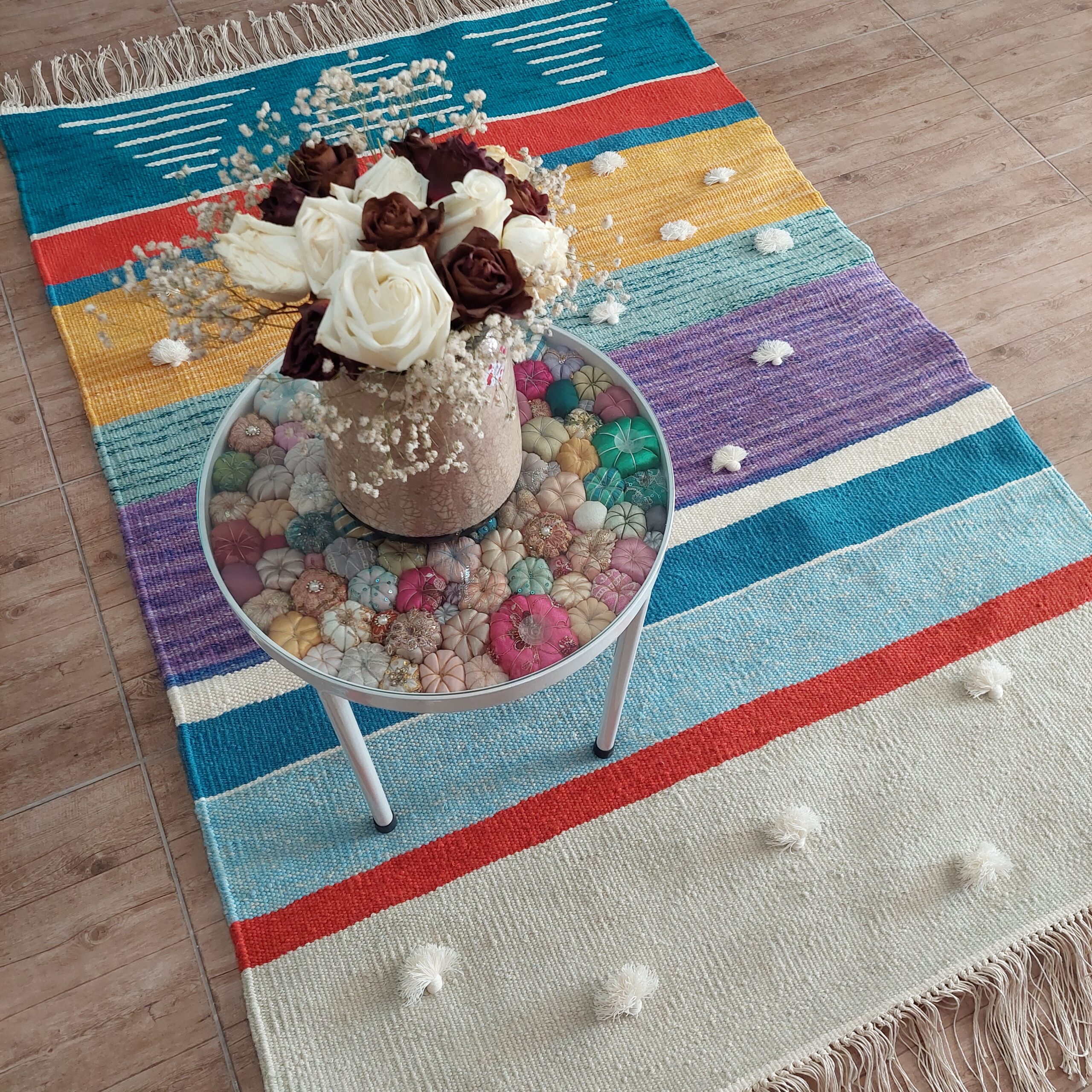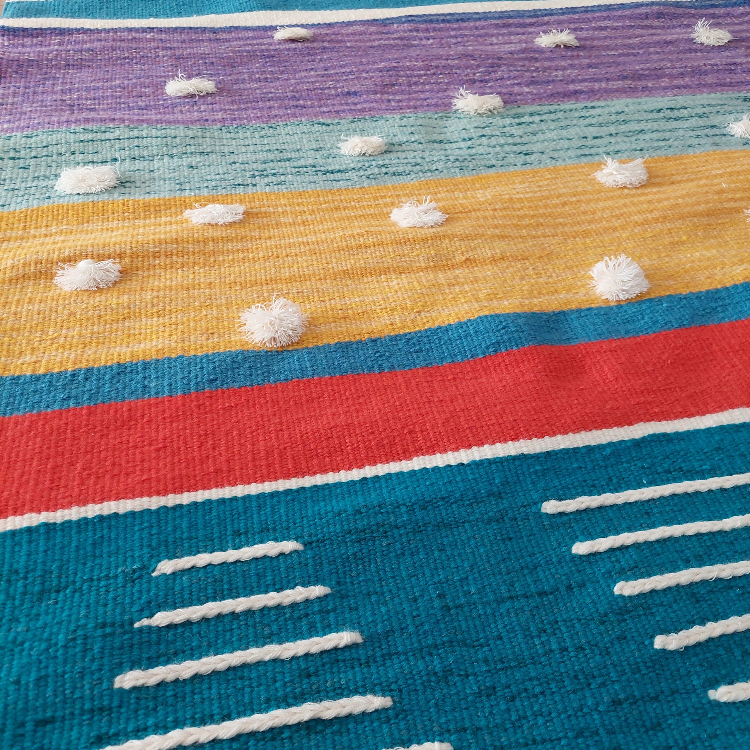 kilim de qualité design et contemporain, tissé à la main avec du coton et de la laine.