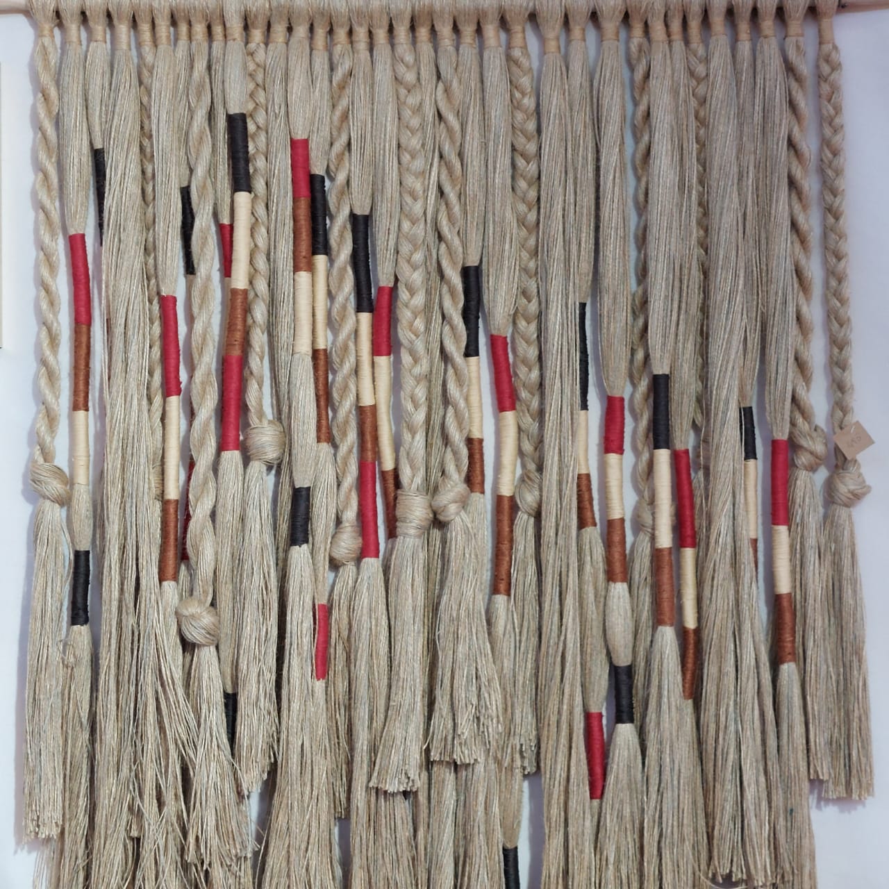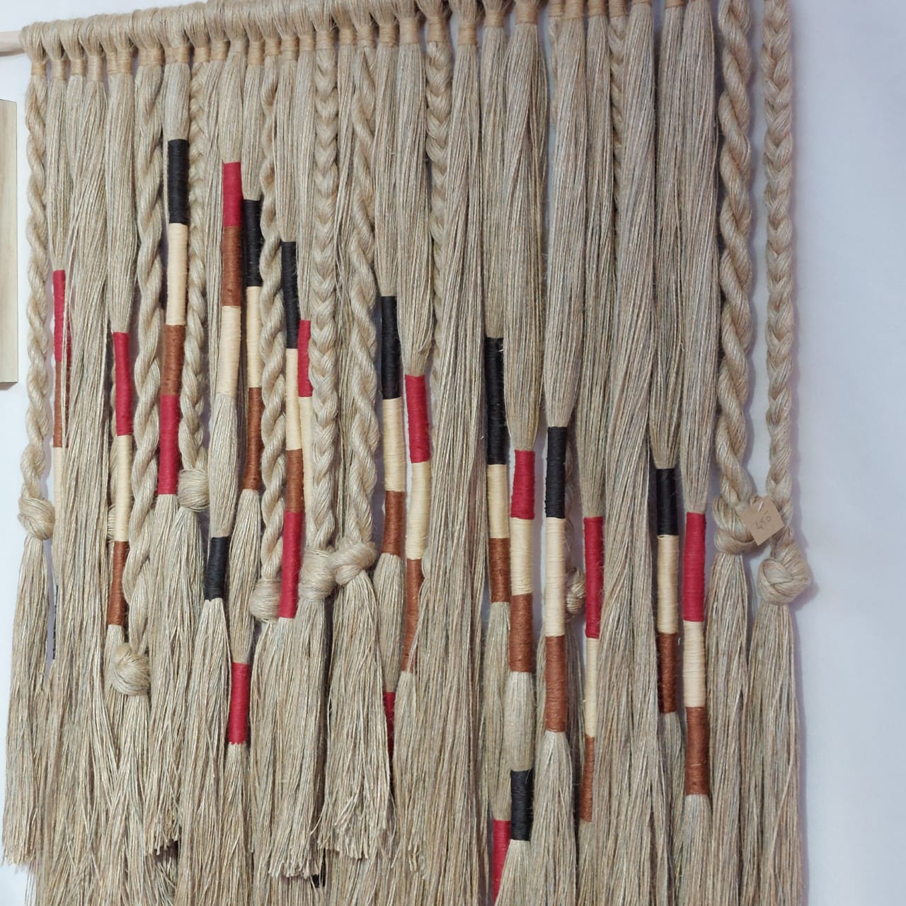 Tapisserie murale en fibre végétal, fil de jute tissé à la main originale et unique.
